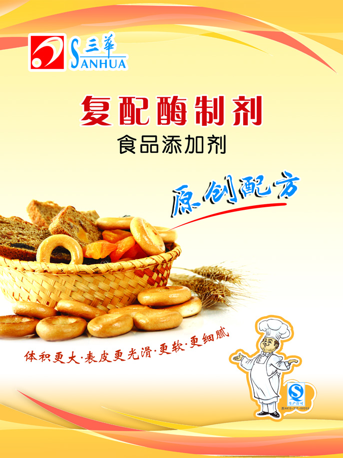 三、 添加方法:跟面粉一起混合,操作简单、方便。在生产过程中,添加酵母后,直接加上复配酶制剂——面包专用就能达到满意效果。如果客户还有其它需要,也可加上其它的面包改良剂;